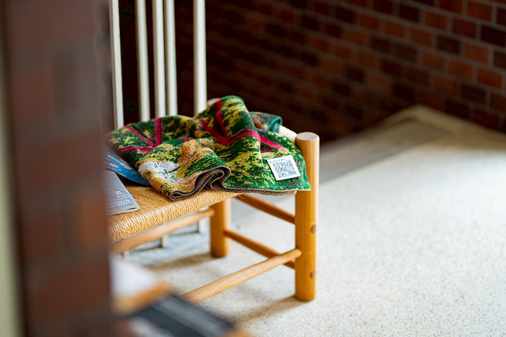 ニットワッペンの二次元コードを読み取ると、商品詳細や景色の解説を閲覧可能。